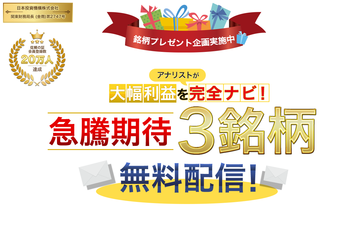 たった一度だけ完全無料で急騰期待銘柄を差し上げますので